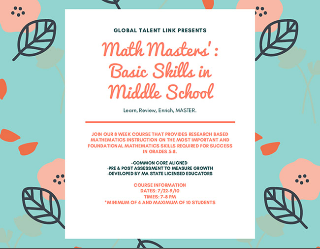 参加为期8周的课程,该课程提供基于研究的数学指导,来帮助学习5-8年级成功所需要的最重要的基础数学技能